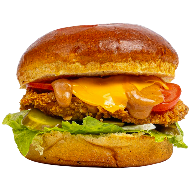 zinger chicken piece, cheese, lettuce, tomatoes, pickles