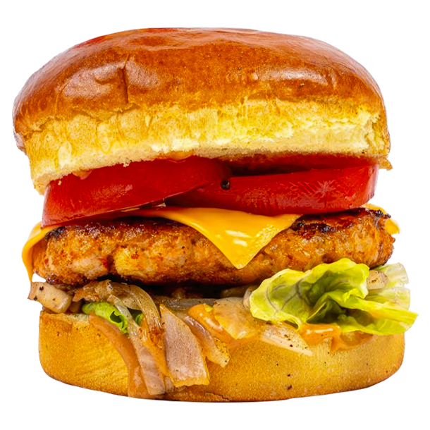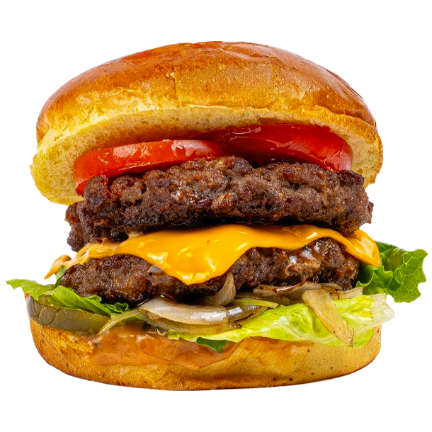 2 beef patties, cheese, lettuce, tomatoes, pickles